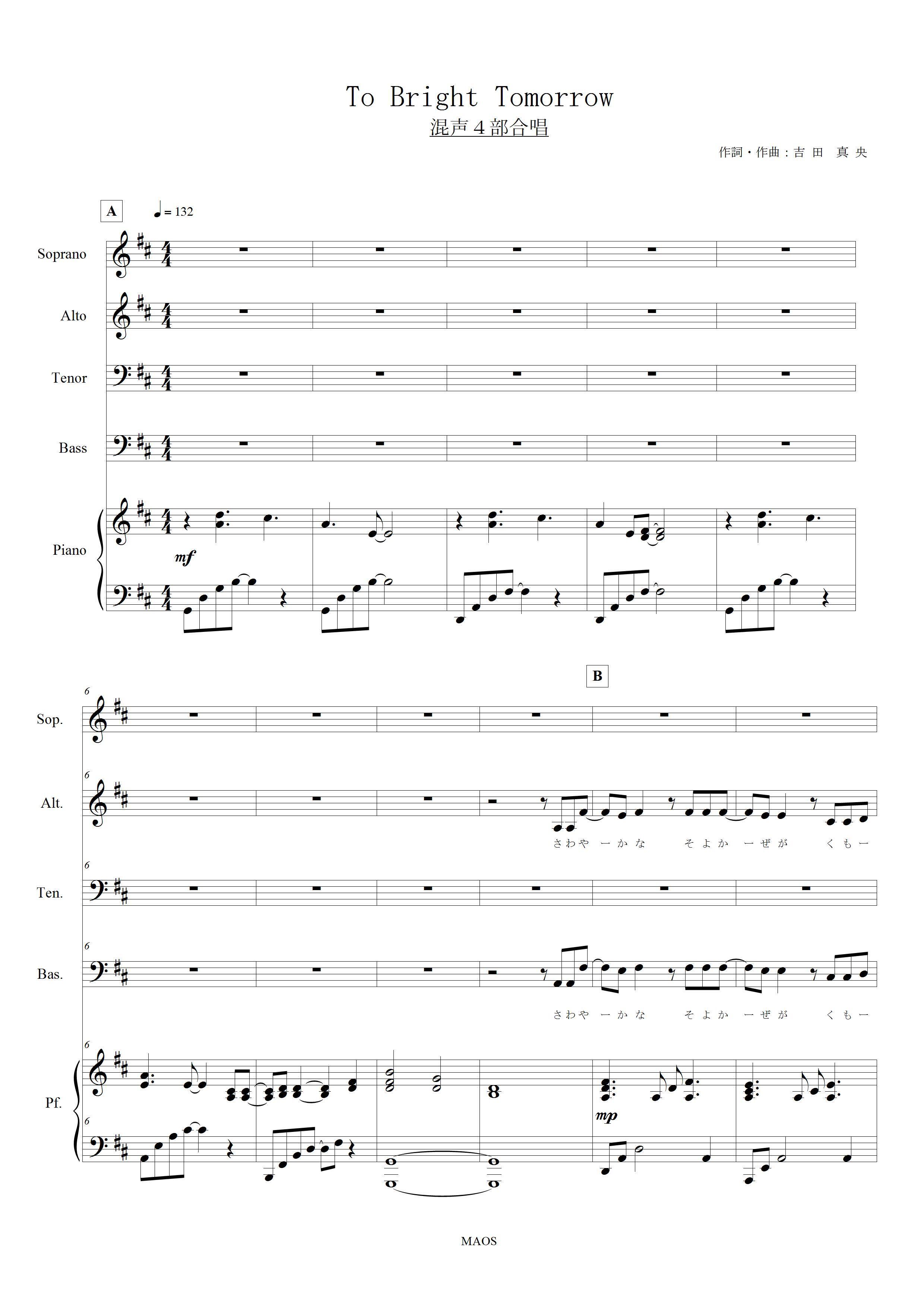 To Bright Tomorrowの合唱バージョン(混成4部合唱)の楽譜です。
